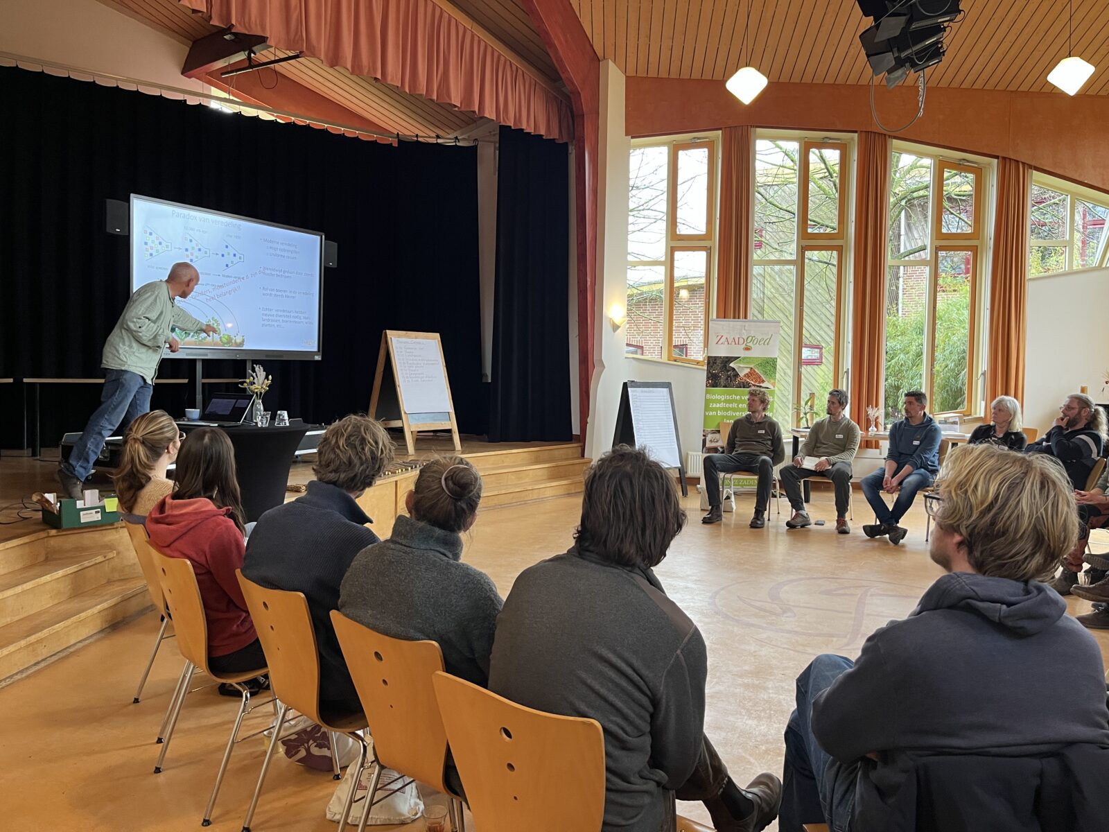 De eerste cursusdag begon op Warmonderhof in Dronten, met een introductie van Edwin Nuijten. Hij vertelde onder andere over het belang van zaadvaste rassen, de verschillende methoden van selectie, instandhouding en vermeerdering, en hoe dat op een biologische manier te doen.