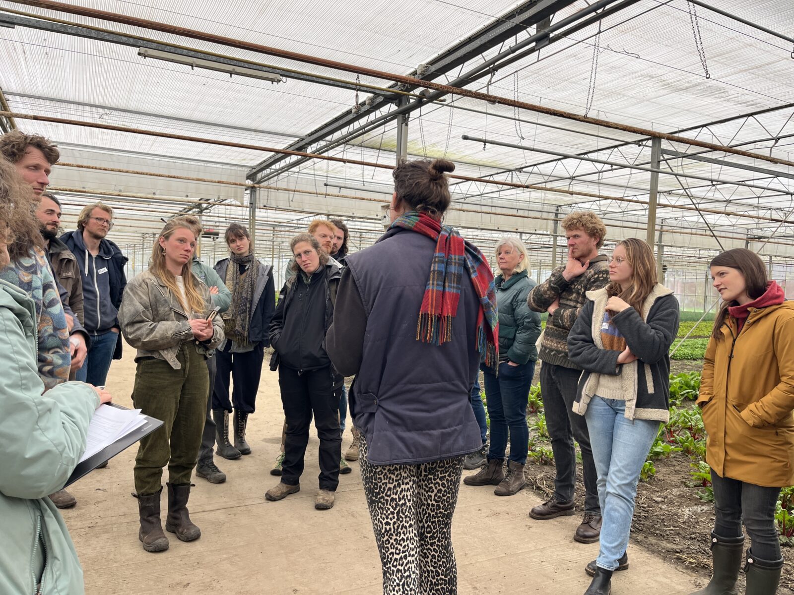 Daarna volgde een biologische lunch en een rondleiding in de kas van Warmonderhof. In de zomer, als de kas leegstaat, worden daar zaden geteeld. Tuinder Marloe Mens vertelde over haar ervaringen hiermee. Na de rondleiding volgde meer informatie van Edwin over alle zaken waar je op moet letten tijdens zaadveredeling van zaadvaste zaden, zodat de deelnemers aan de slag konden met een casus. In groepjes werkten ze aan een groenteras om de opgedane kennis in de praktijk te brengen.